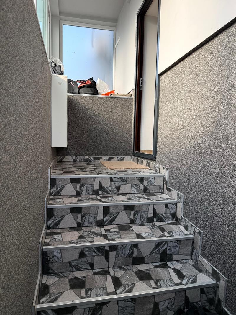 Ulazni hodnik sa modernim stepeništem i sigurnosnim vratima