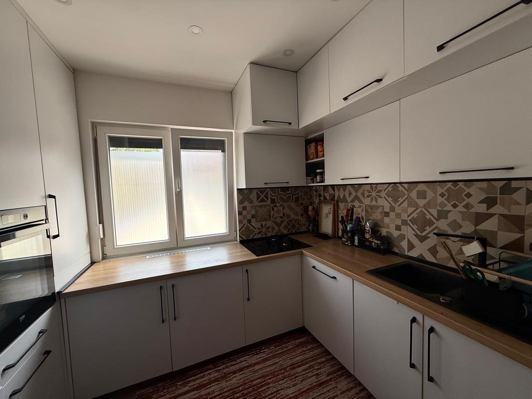 Na prodaju dvospratna kuća sa dvorištem, kliznom kapijom i parking prostorom. Kuća je potpuno renovirana, moderno uređena i odmah useljiva.