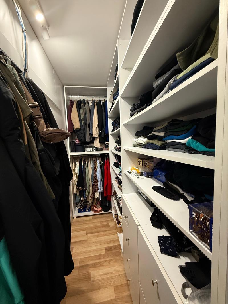 Prostran dnevni boravak sa dekorativnim zidom koji skriva ulaz u veliki ormar/walk-in